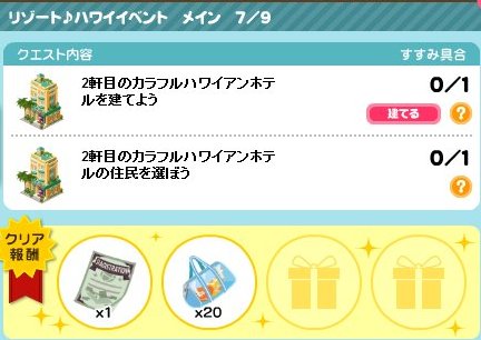 リゾートハワイイベントは、7つ目で、クリアすると、ビーチバッグをゲットできます。