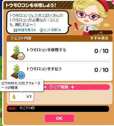 クリアすると、500ライフコインと活力剤/トウモロコシ専用がもらえます。