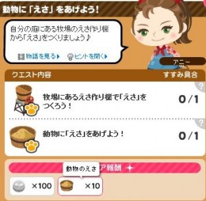 牧場クエスト4:飼っている動物のなかよしどレベルをあげよう