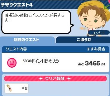 クリアすると、動物スタミナビスケット/1回復(マヌカ)がもらえます。