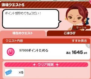 それと、ソニアクエスト5は、後5回くらいでクリアです。