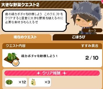 また、特大緑カボチャは、レベルじゃなかった、クエスト5をクリアすると、植えることができます。