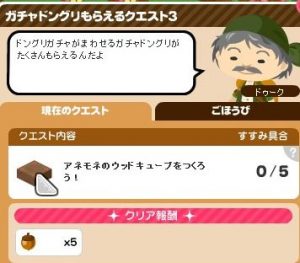 ガチャドングリもらえるクエスト3も開始、3月12日 12時00分 ~ 3月13日 11時59分まで。