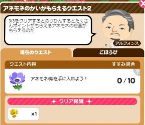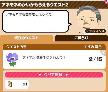 さらには、アネモネのかいがもらえるクエスト2も開始です。