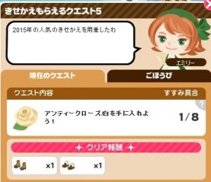 きせかえもらえるクエスト5出ています。