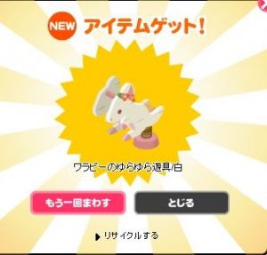 初回無料なので回してみたら、ワラビーのゆらゆら遊具が出ました。