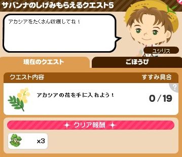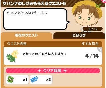 サバンナのしげみもらえるクエスト5と大活やくタイム2.3倍